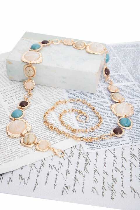O Cinto Duna é o acessório perfeito para dar um toque moderno e sofisticado ao seu visual. Com design em corrente delicada e pingente com aplicação de pedras, ele traz charme e elegância na medida certa.