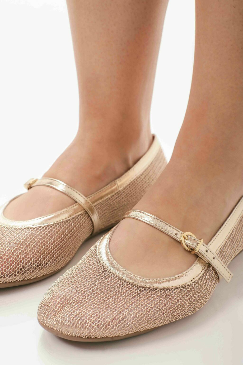 A Sapatilha Eva é a escolha ideal para quem valoriza elegância e conforto no dia a dia. Com seu design sofisticado, este modelo destaca-se pelo acabamento em tecido com efeito metálico, que confere um brilho sutil e uma feminilidade única ao seu visual. Os detalhes em material sintético dourado realçam ainda mais o charme da sapatilha, tornando-a uma peça versátil para diversas ocasiões.